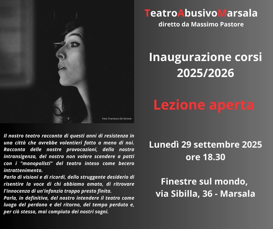 Teatro Abusivo Marsala diretto da Massimo Pastore - Inaugurazione corsi 2025/2026