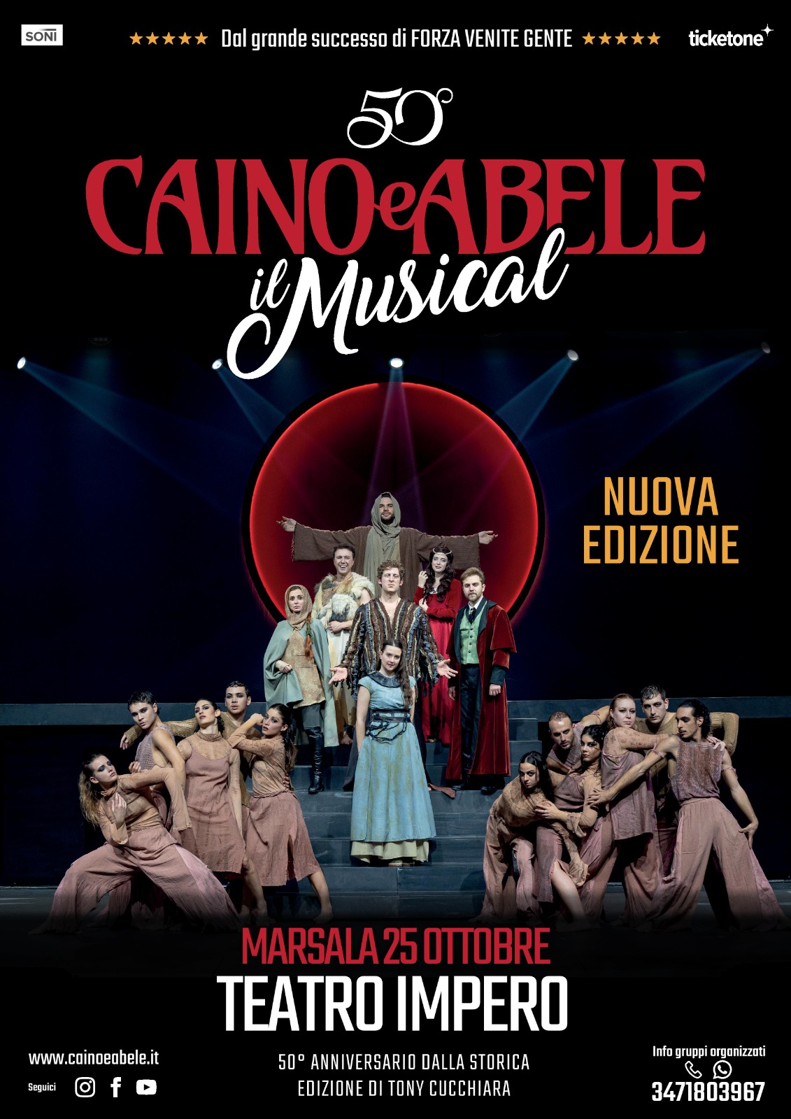 Sabato 25 ottobre, ore 21, al teatro Impero di Marsala, andrà in scena il musical “Caino e Abele”, con la regia di Tony Cucchiara. Il musical racconta l’eterna lotta tra il bene e il male in 8 quadri. I biglietti sono disponibili su ticketone.it