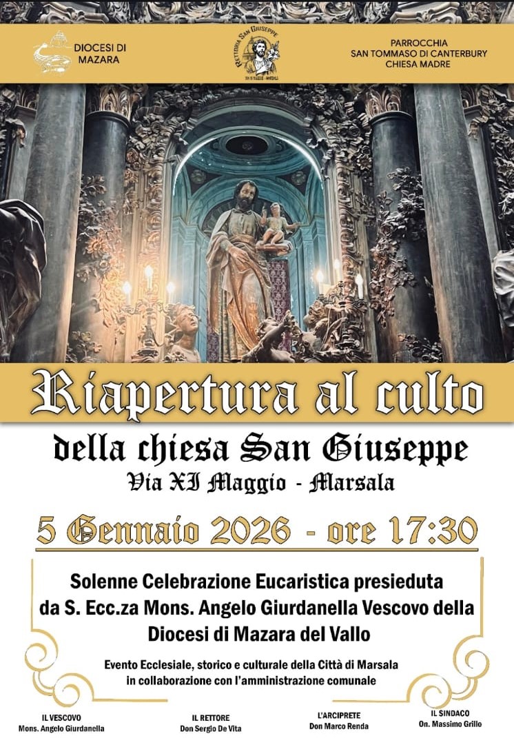 Marsala Città Della Pace - Il 5 Gennaio 2026 alle 17.30 - Apertura Chiesa Di San Giuseppe in Via Xi Maggio Marsala