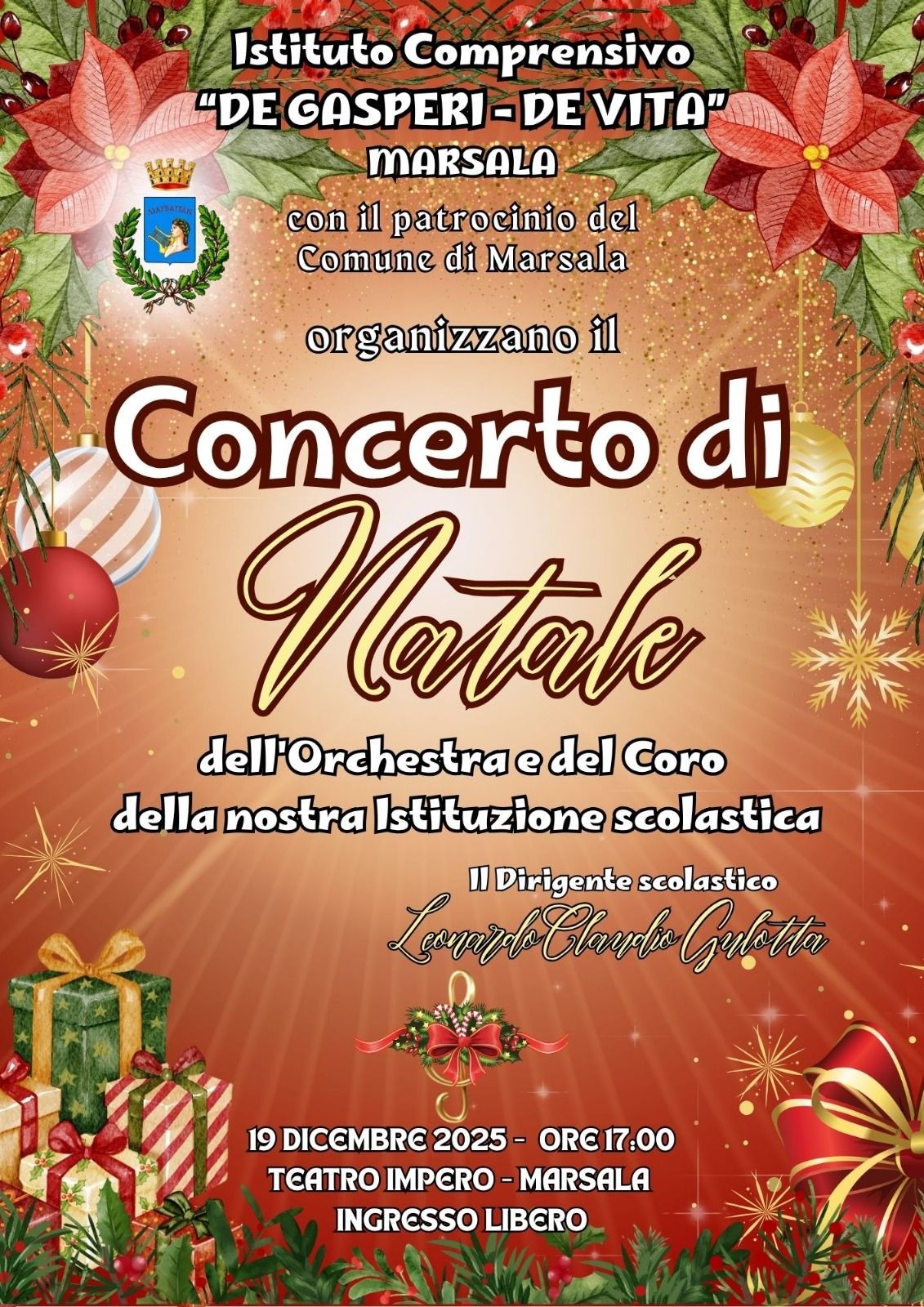 Comprehensive Institute De Gaspare-De Vita Marsala, under the patronage of the Municipality of Marsala, are organizing the Christmas Concert of the orchestra and choir of our school institution