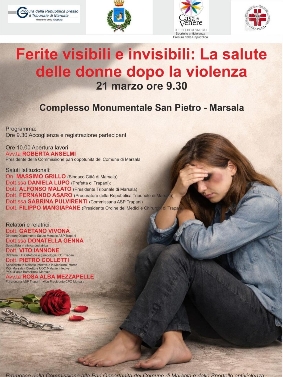 21 Marzo 2026 Complesso Monumentale San Pietro - ore 9.30 Accoglienza e registrazione - ore 10.00 Apertura lavori Avv.ta Roberta Anselmi Presidente della Commissione pari opportunità del Comune di Marsala