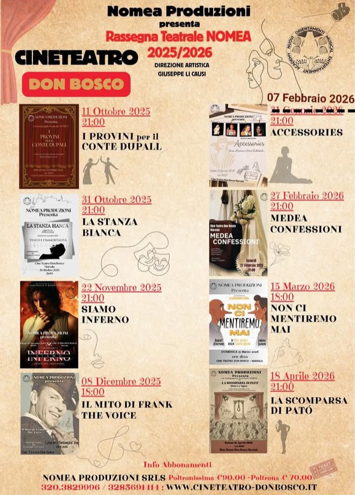 Nomea Produzioni presenta Rassegna Teatrale Nomea direzione artistica Giuseppe Li Causi al Cineteatro Don Bosco