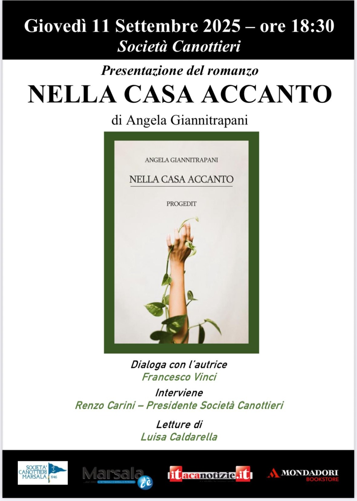 Presentazione del romanzo "Nella casa accanto" di Angela Giannitrapani. Dialoga con l'autrice Francesco Vinci - interviene Renzo Carini Presidente Società Canottieri - letture di Luisa Caldarella