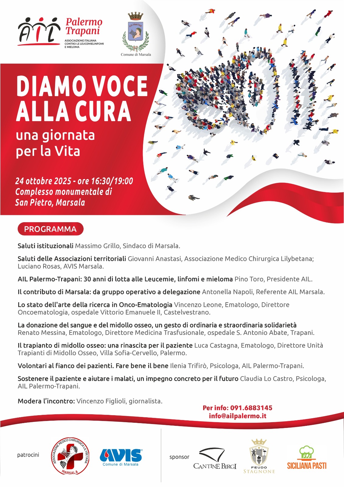 24 Ottobre 2025 ore 16.30 al Complesso Monumentale San Pietro Marsala - DIAMO VOCE ALLA CURA una giornata per la Vita