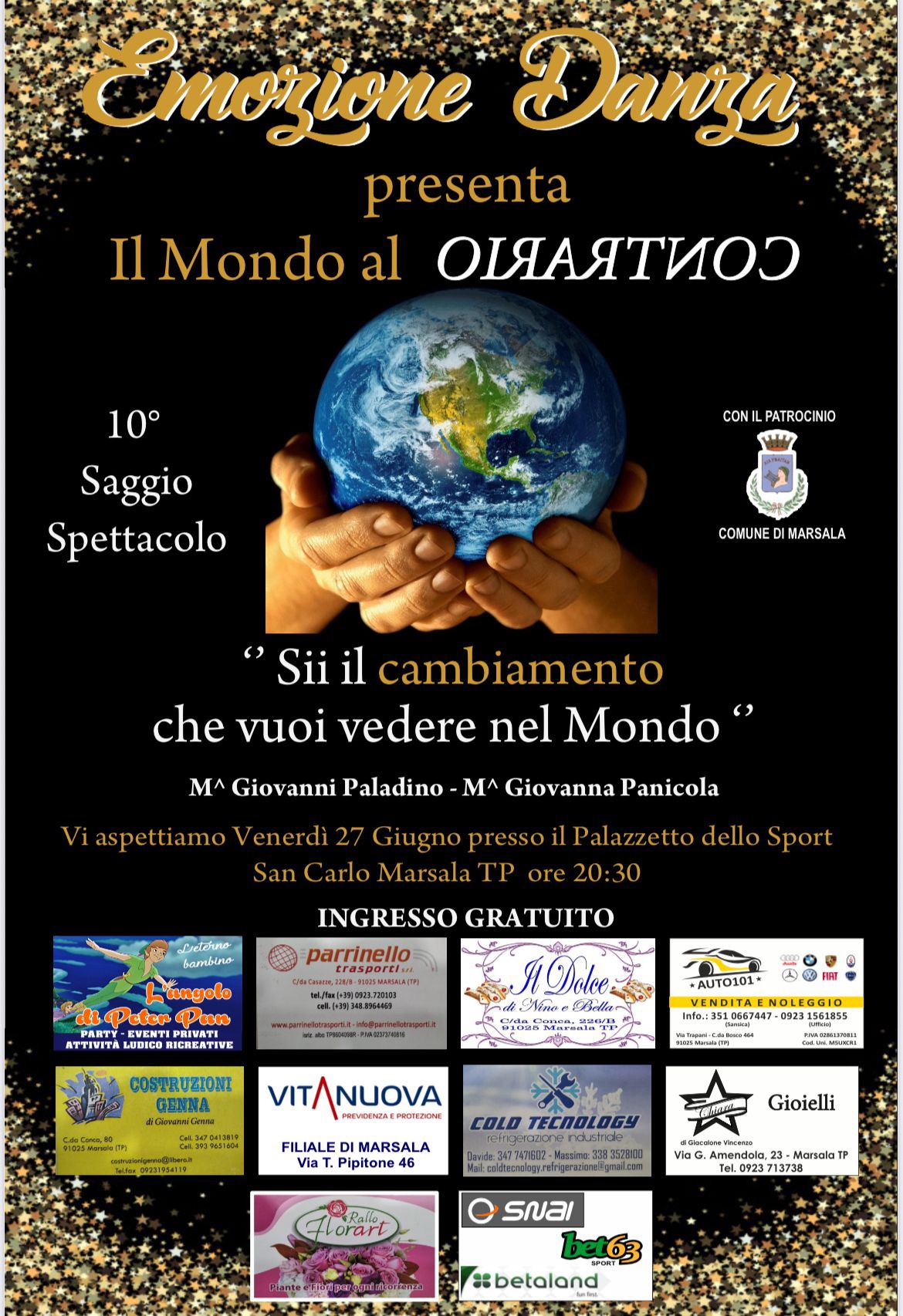 "Sii il cambiamento che vuoi vedere nel mondo" di Giovanni Paladino e Giovanna Panicola - Venerdi 27 Giugno presso il Palazzetto dello Sport San Carlo Marsala alle 20.30