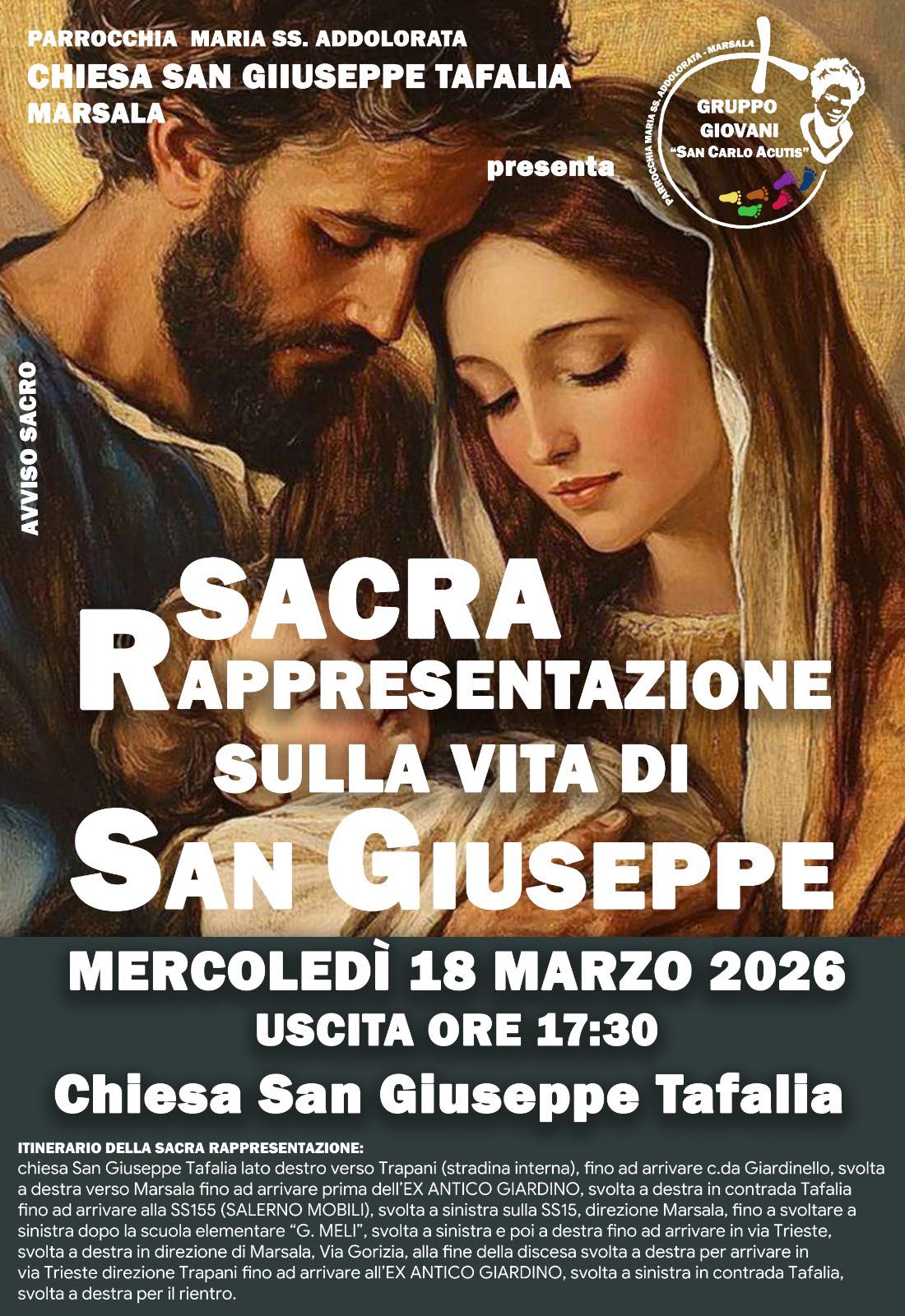 Parish of Our Lady of Sorrows - Church of San Giuseppe Tafalia Marsala - Celebrations in honor of San Giuseppe in the Tafalia district 2026 - NOVENA in honor of San Giuseppe from March 10th to 17th at 6:00 PM - Itinerary attached