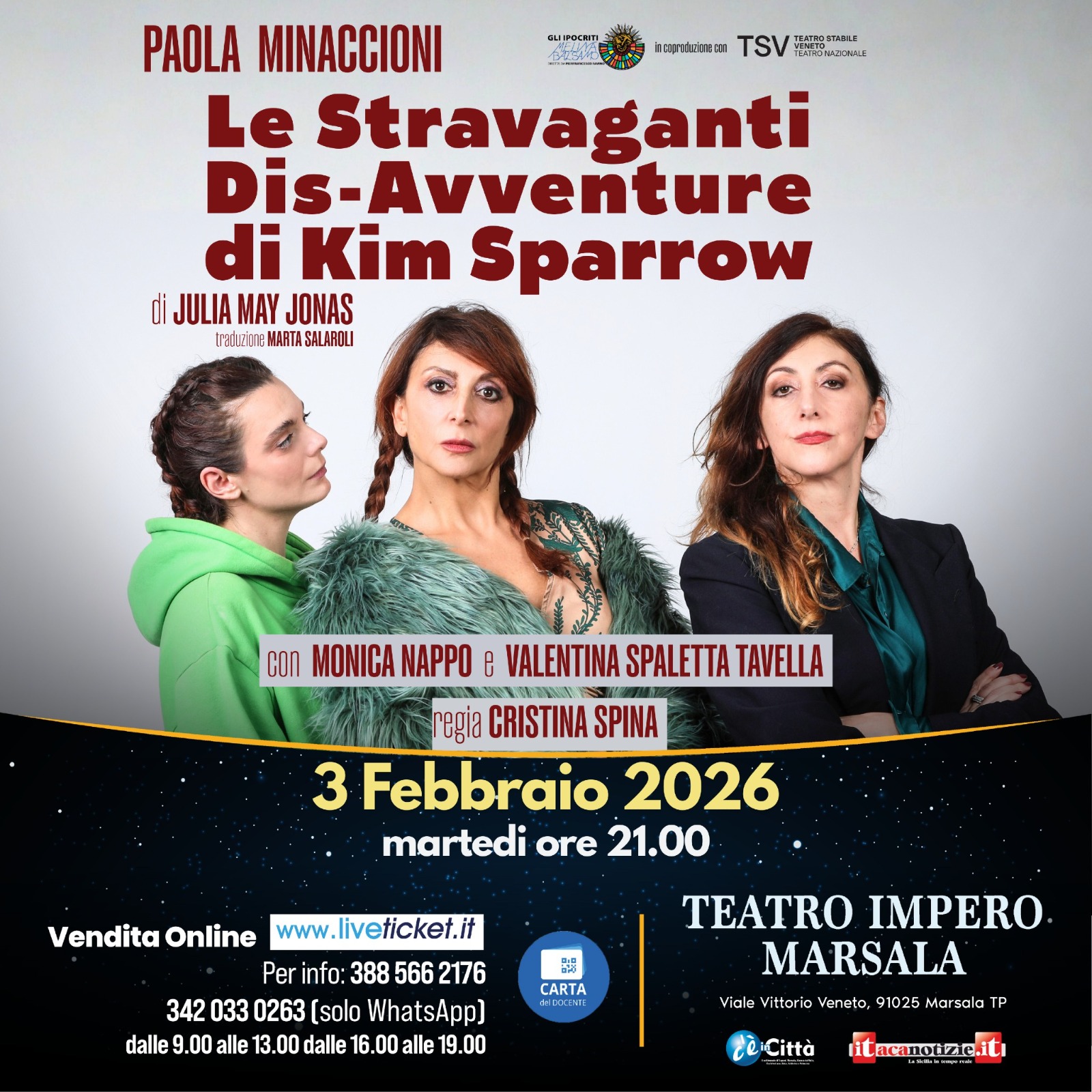 The Extravagant Mis-Adventures of Kim Sparrow by Julia May Jonas - with Monica Nappo and Valentina Spaletta Tavella, directed by Cristina Spina - February 3, 2026 at 9:00 PM Teatro Impero Marsala